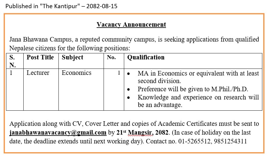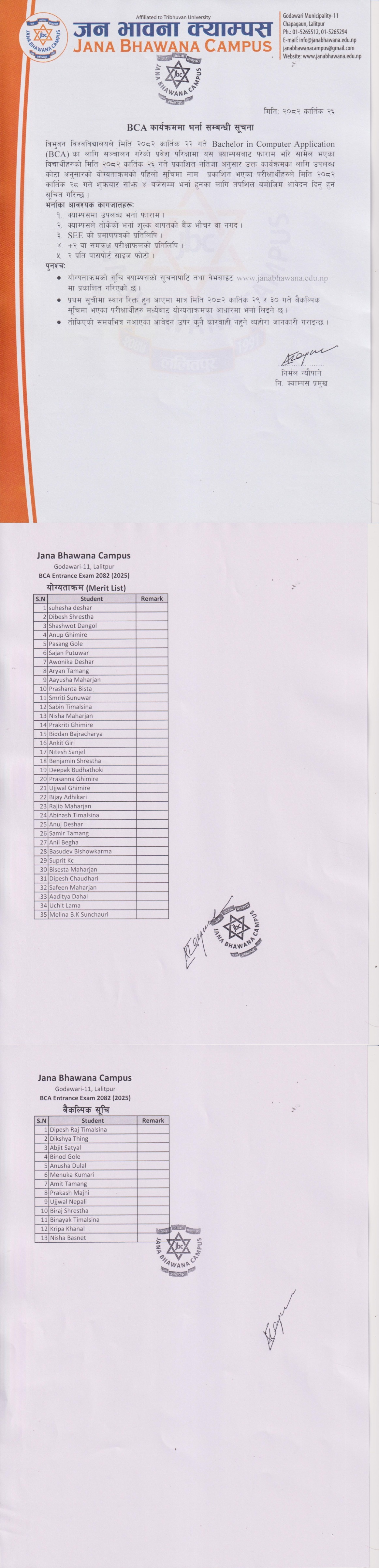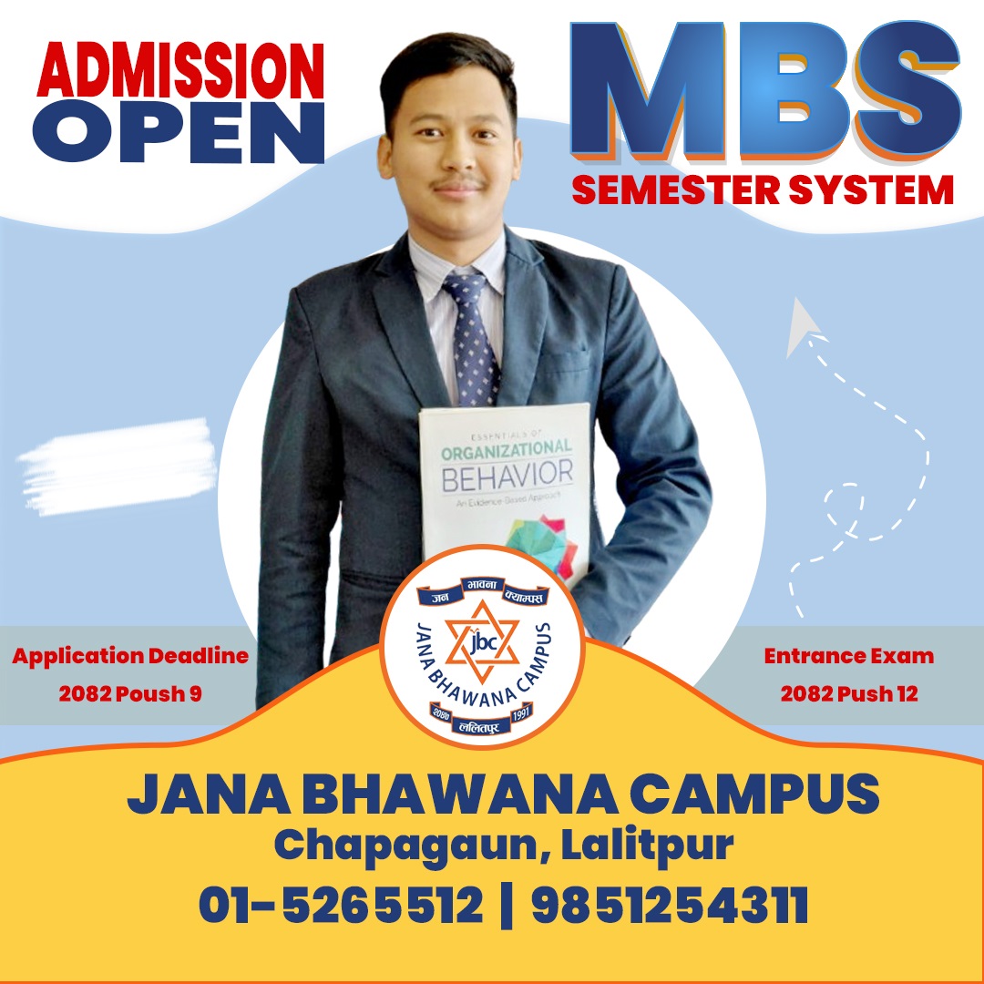 Jana Bhawana Campus, Situated at Godawari-11, Chapagaun, Lalitpur, is a leading academic institution established in 1991 by a team of renowned academicians, educationists and professionals. It was certified as a "QAA certified institution" in the year 2019 by University Grants Commission (UGC), Nepal and has been striving forward with potent determination, dedication and well-set plan to become an&nb...
