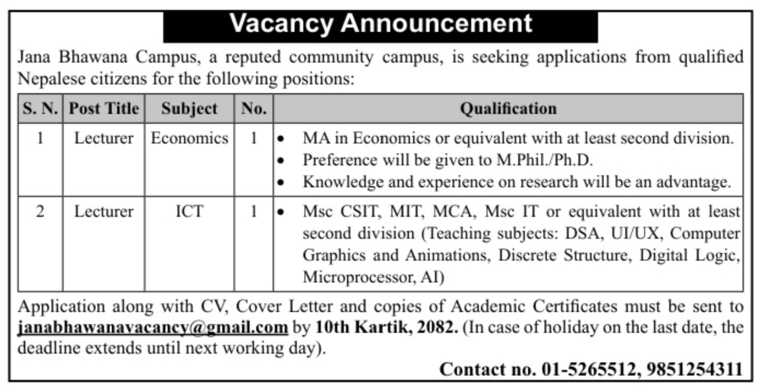 Jana Bhawana Campus, Situated at Godawari-11, Chapagaun, Lalitpur, is a leading academic institution established in 1991 by a team of renowned academicians, educationists and professionals. It was certified as a "QAA certified institution" in the year 2019 by University Grants Commission (UGC), Nepal and has been striving forward with potent determination, dedication and well-set plan to become an&nb...